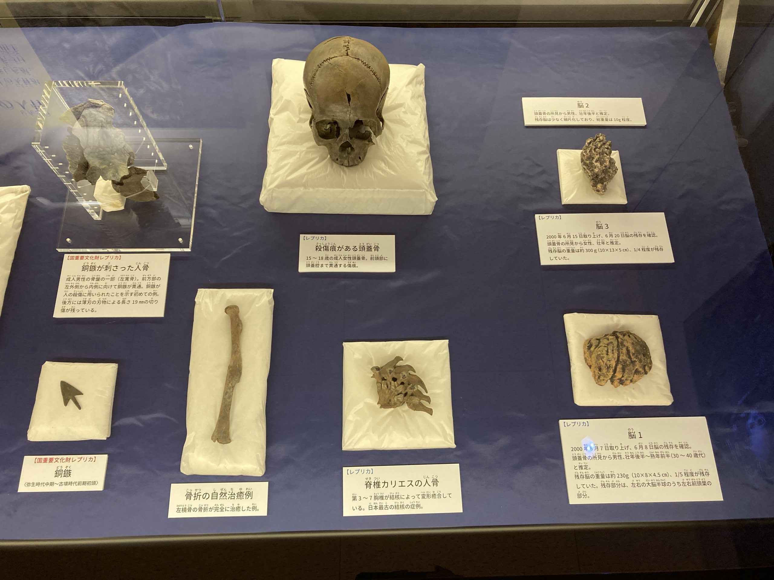 矢の跡が残る頭蓋骨